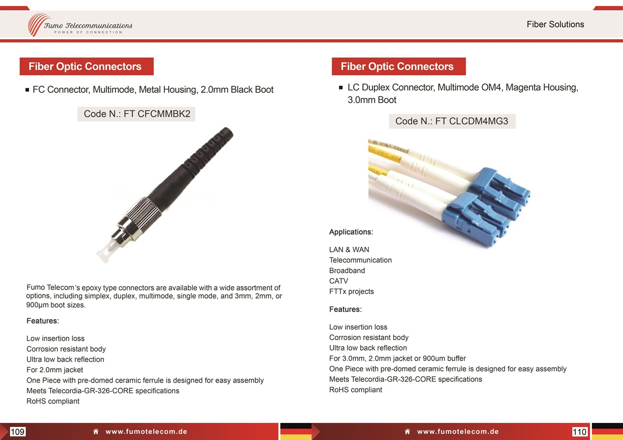 FC Connector, Multimode, Metal Housing, 2.0mm Black Boot